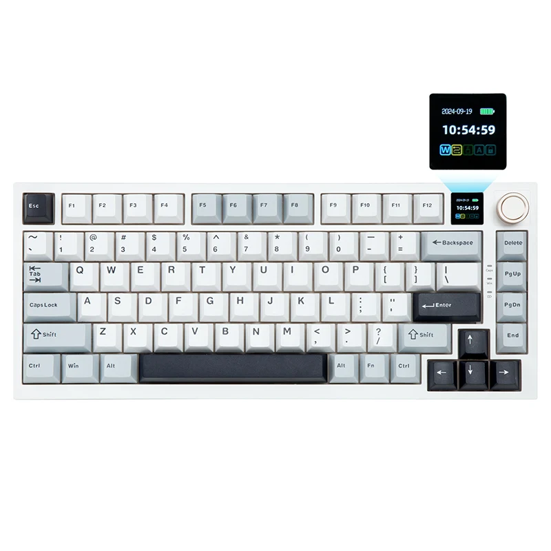 Pantalla multimedia de color vibrante: el diseño de pantalla multimedia de bricolaje en la esquina superior derecha del teclado le permite visualizar en el tiempo, volumen de la batería, imagen GIF, bloqueo de tapas, modo de conexión, sistema WIN/Mac, brillo/velocidad de retroiluminación, modo RGB/color, volumen y lenguaje y más.