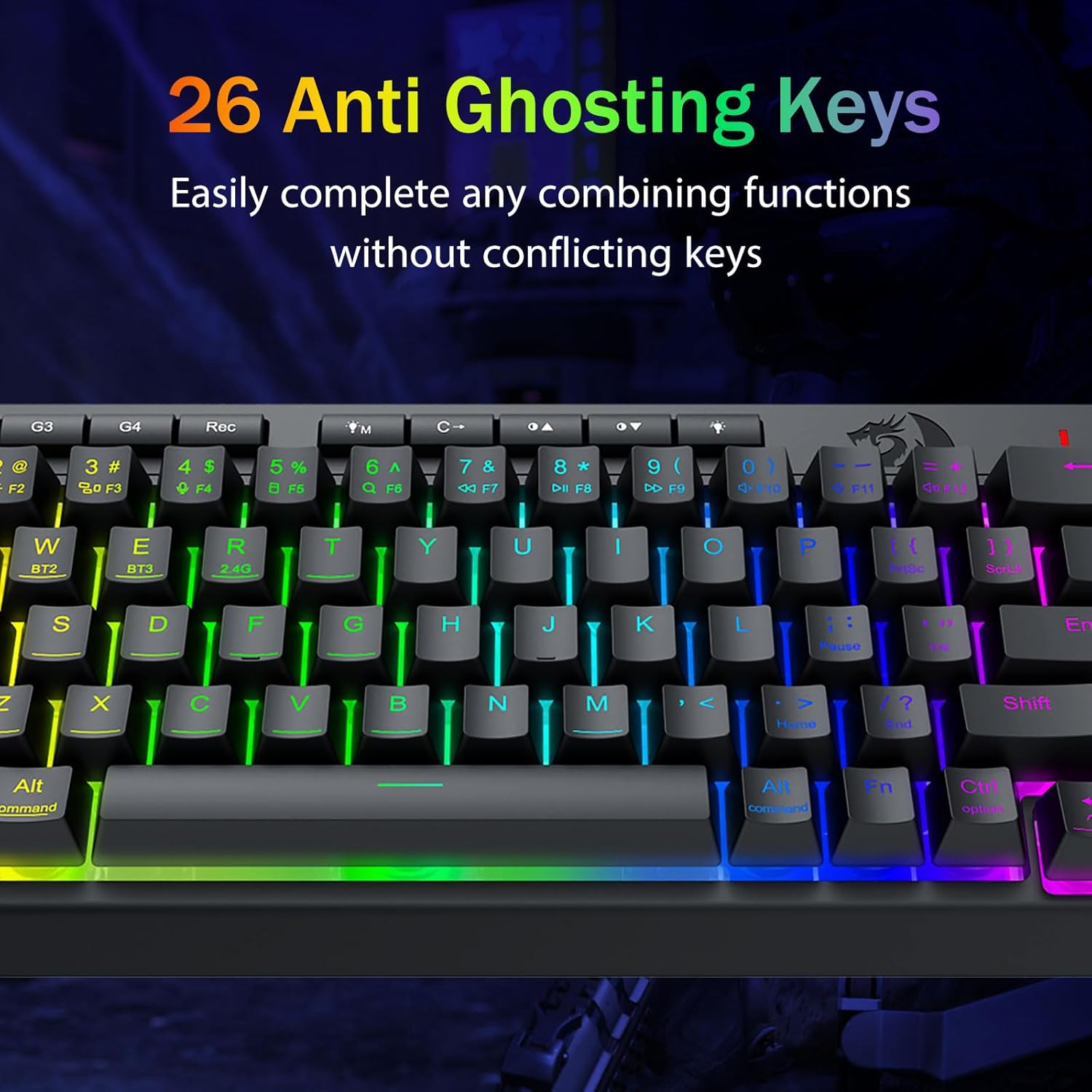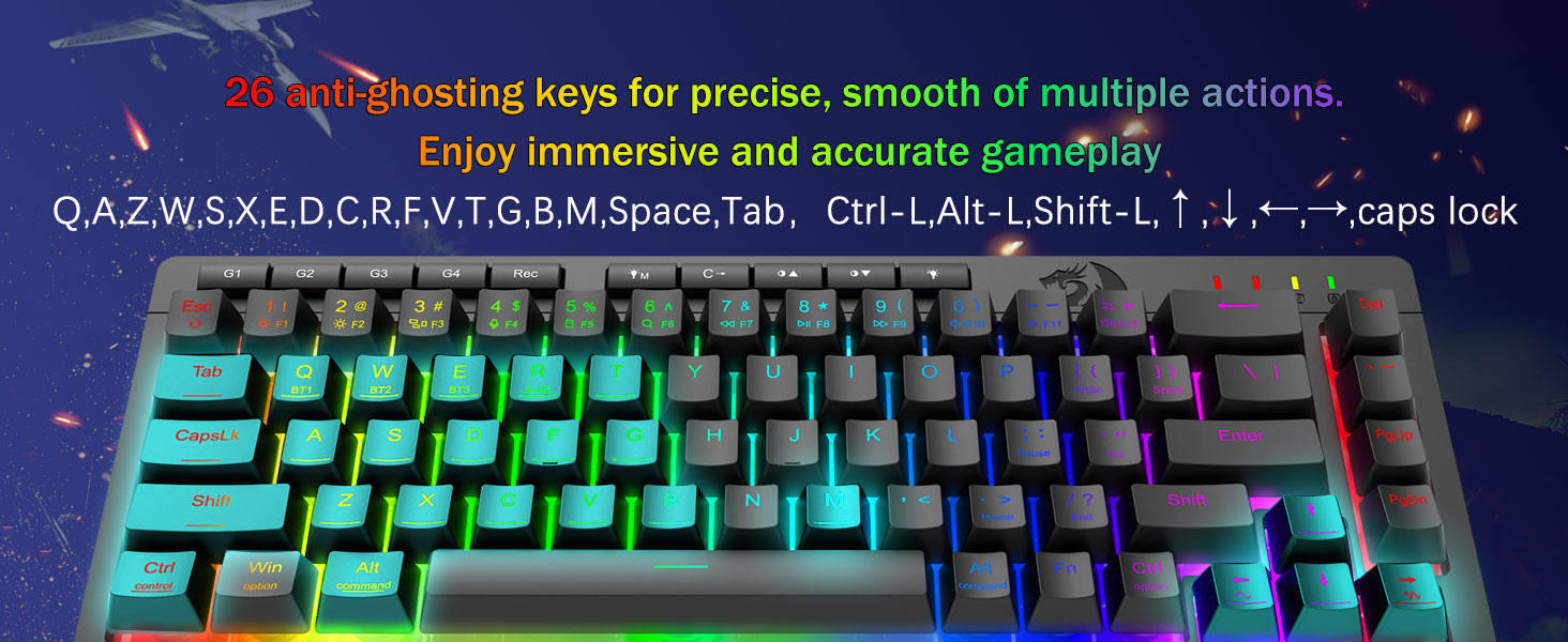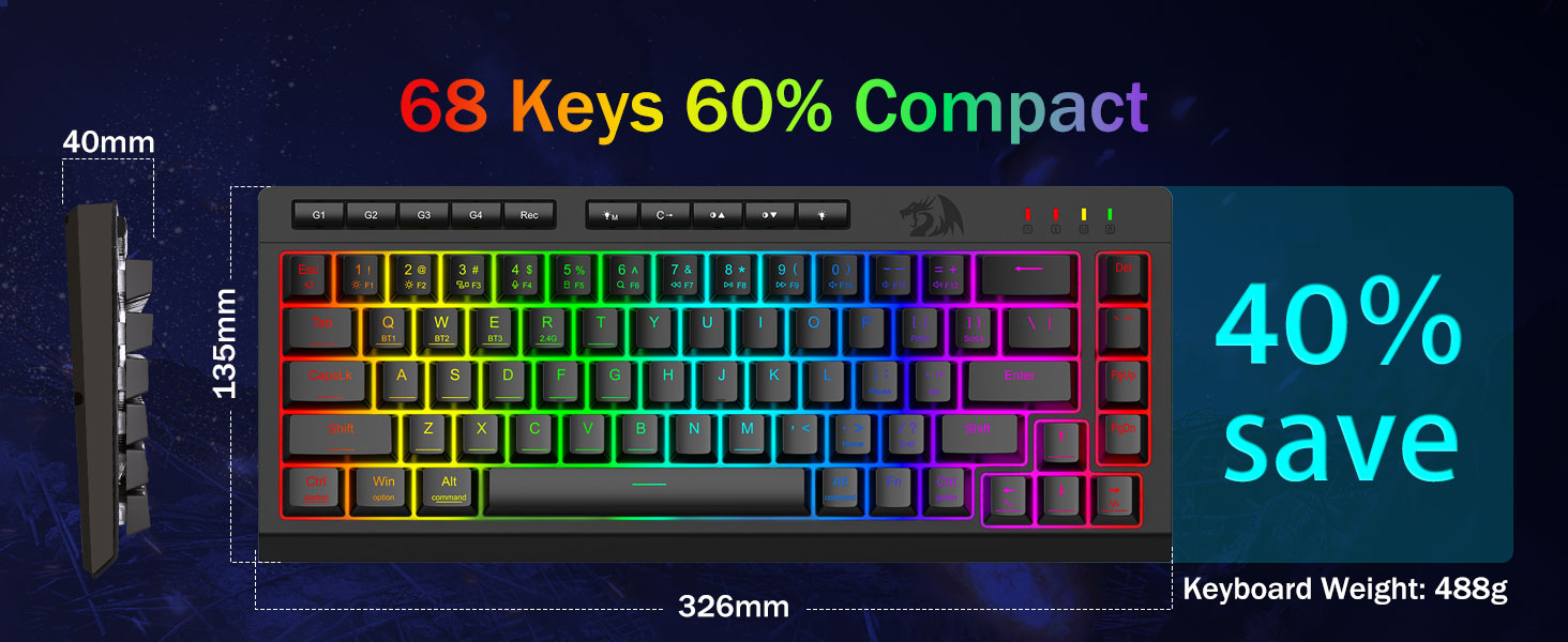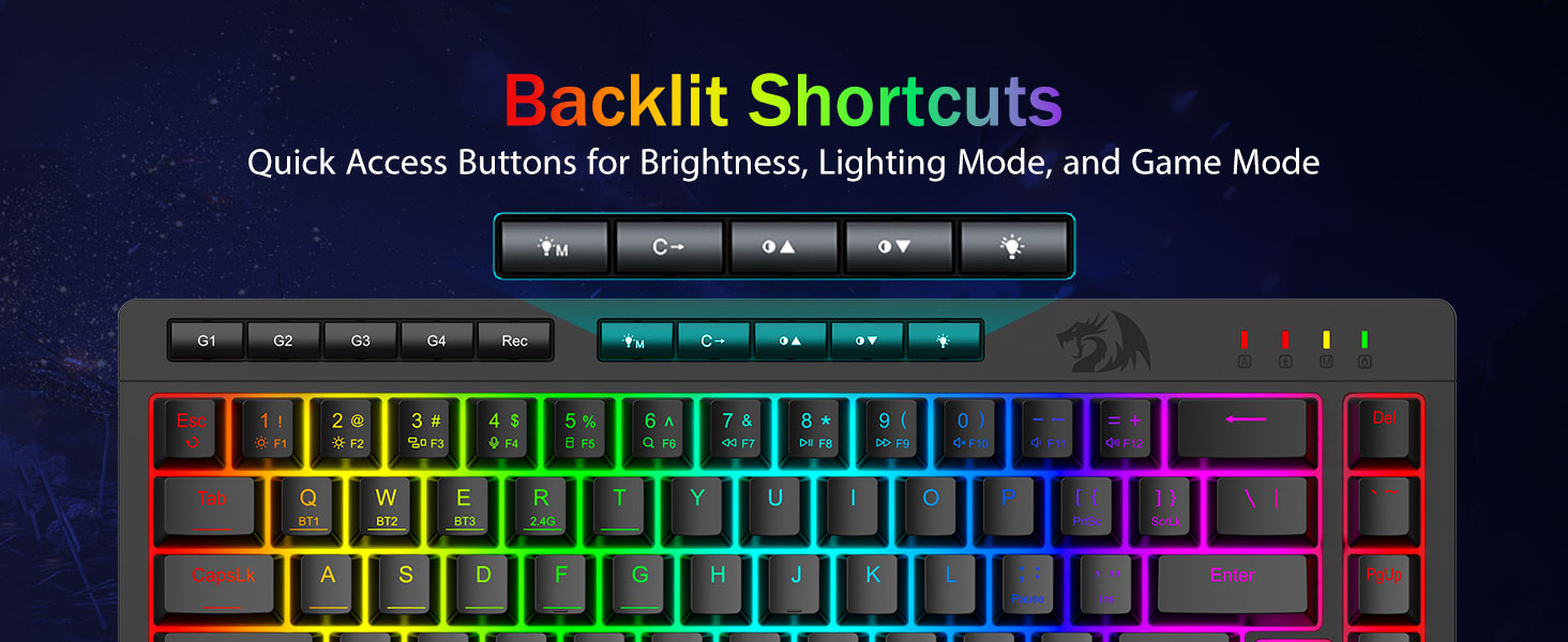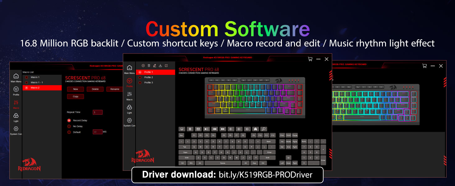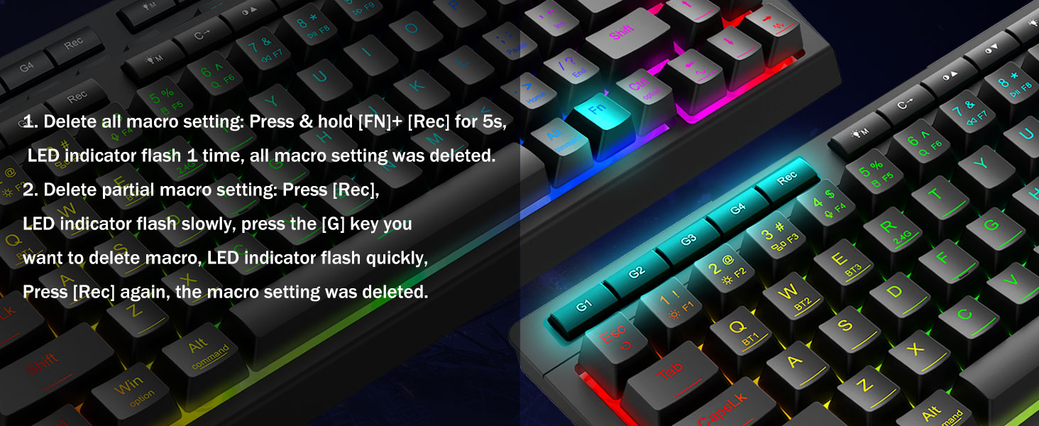 Macros personalizables, control sin esfuerzo -Programe las 4 teclas macro integradas (G1-G4) al instante, no se requiere software. Graba combinaciones complejas para juegos, atajos para productividad o comandos multimedia. Redefina su flujo de trabajo en segundos. También puede utilizar software para personalizar funciones, crear macros, ajustar luces RGB y establecer atajos. Enlace de software: bit.ly/K524RGB-PRODriver