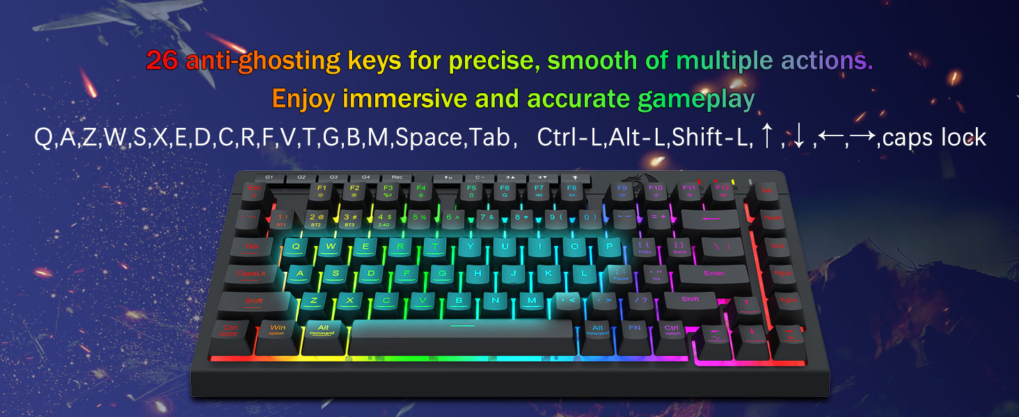 Iluminación RGB inmersiva y ambiente personalizable- Libera 16,8 millones de colores RGB con 8 modos preestablecidos (Rainbow Wave, Reactive Typing) + 6 perfiles de bricolaje.