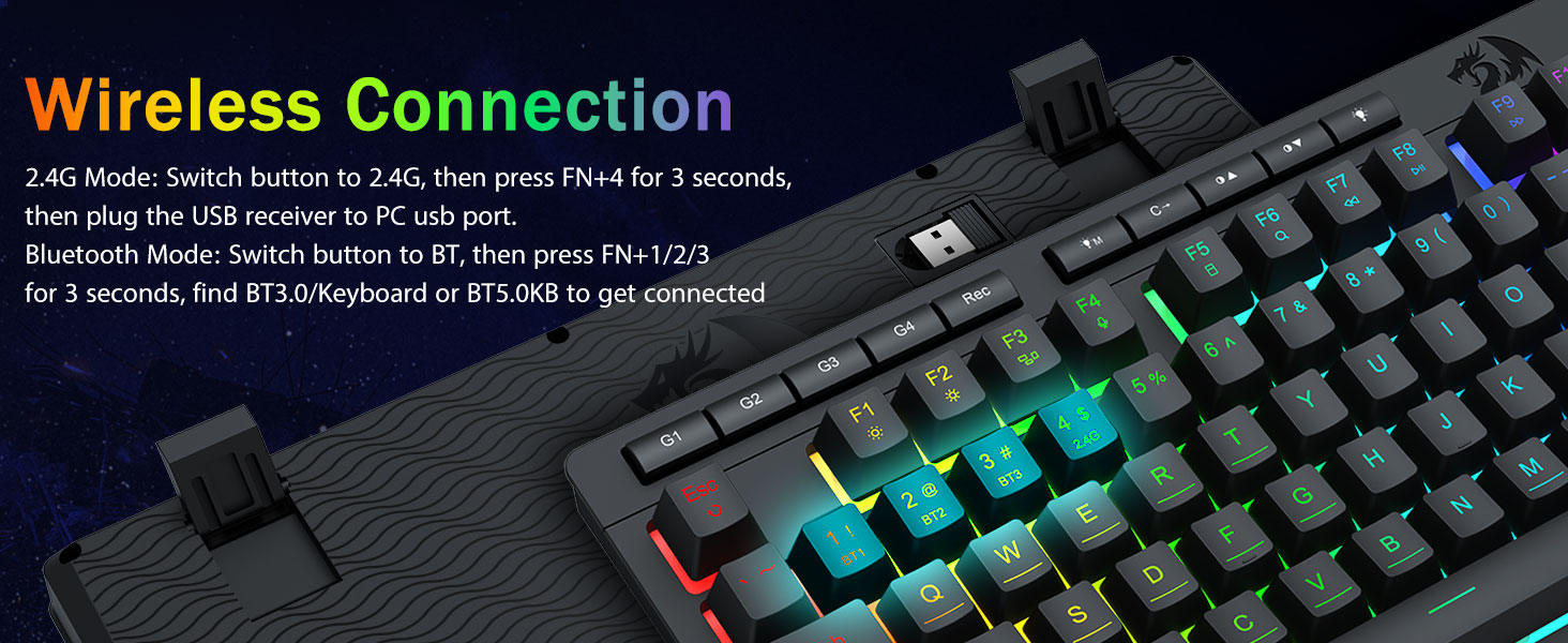Alterne dispositivos sin esfuerzo mediante teclas de acceso directo o botones laterales, perfecto para configuraciones híbridas de trabajo y juegos. Manténgase encendido durante semanas con la batería de 4000 mAh (más de 30 días en espera, 50 horas de funcionamiento RGB).