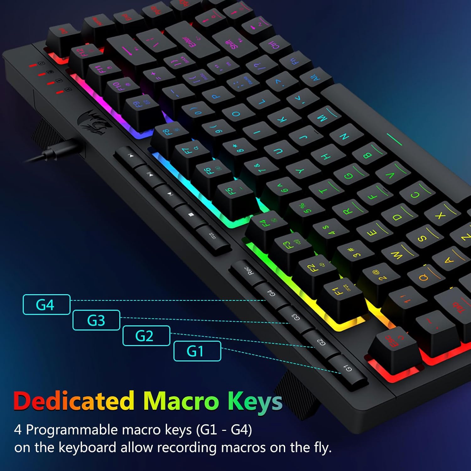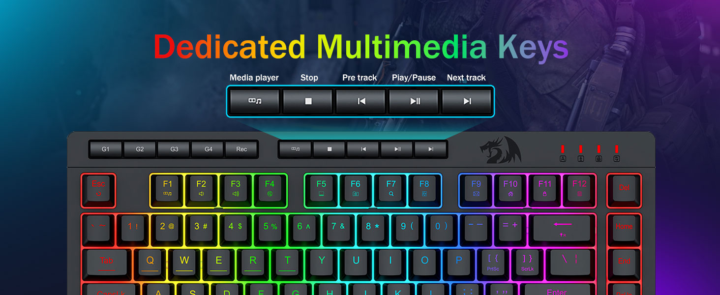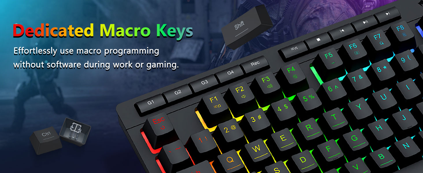【Eficiente y conveniente】Este combo de teclado y mouse para juegos está equipado con 4 teclas macro integradas, 5 teclas multimedia independientes y 12 teclas de función multimedia FN, simples y cómodas de operar. No sólo mejora la eficiencia sino que también hace que el proceso de juego sea más cómodo y rápido.