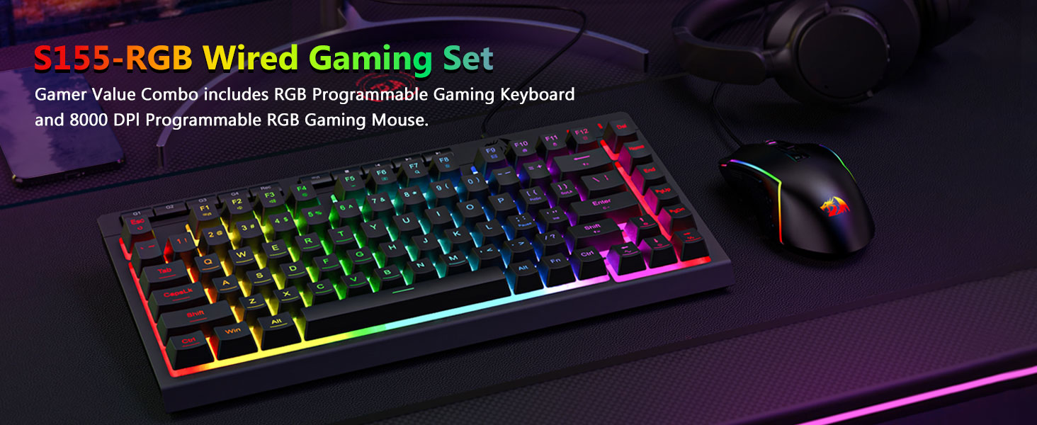 Combinación de teclado y mouse para juegos con cable retroiluminado RGB S155 negro
