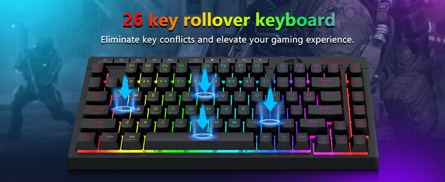 【Juegos cómodos】El soporte plegable del teclado, el revestimiento agradable para la piel y las teclas flotantes aumentan la comodidad al escribir. 26 teclas Anti-ghosting garantiza que se puedan activar todos los botones. La clave WIN se puede desactivar para jugar. Este teclado y mouse están dedicados a brindar una experiencia de juego eficiente y al mismo tiempo garantizar la máxima comodidad.