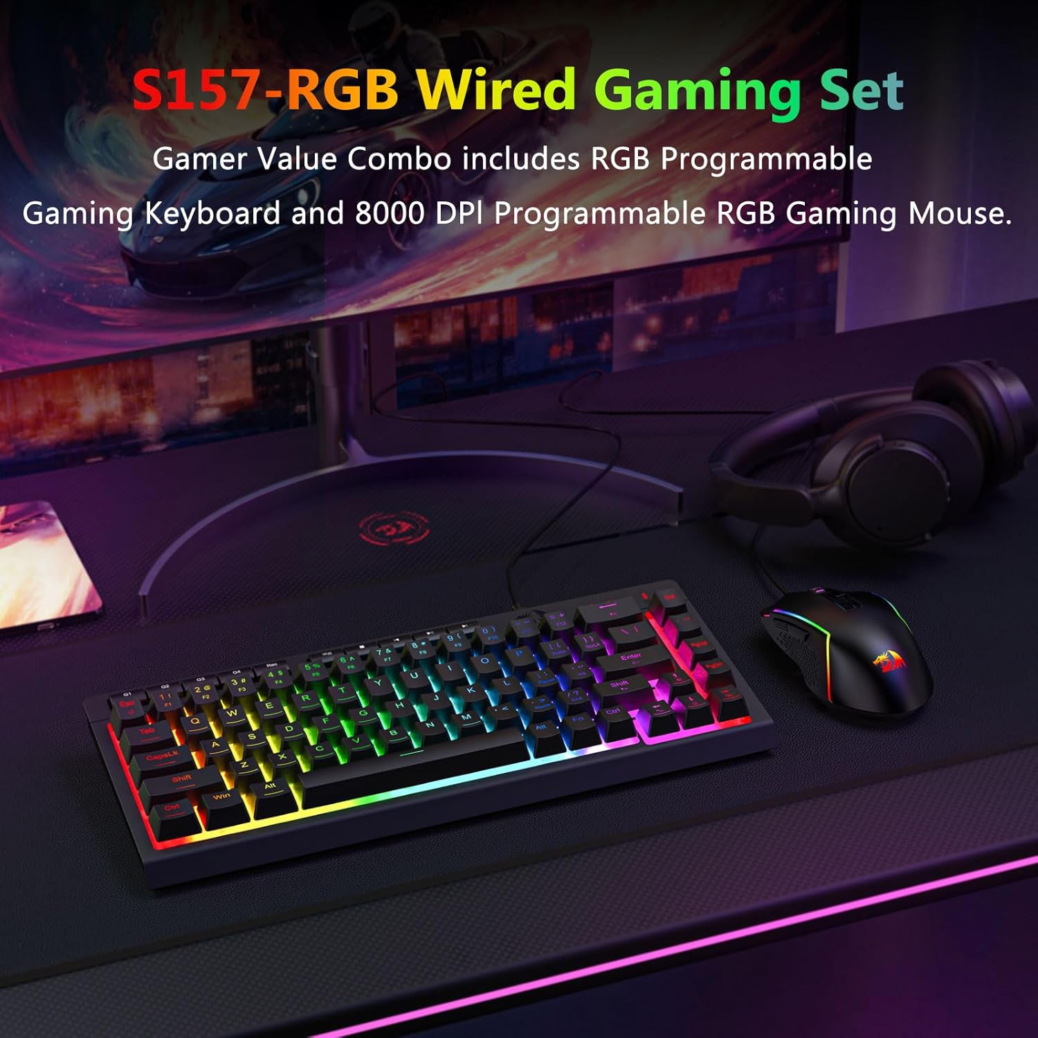 El combo de teclado y mouse para juegos con cable retroiluminado CHUANGQUAN Black S157 RGB ofrece escritura receptiva, seguimiento preciso e iluminación vibrante, ideal para jugadores y usuarios cotidianos que buscan un rendimiento confiable y una configuración limpia y moderna.
