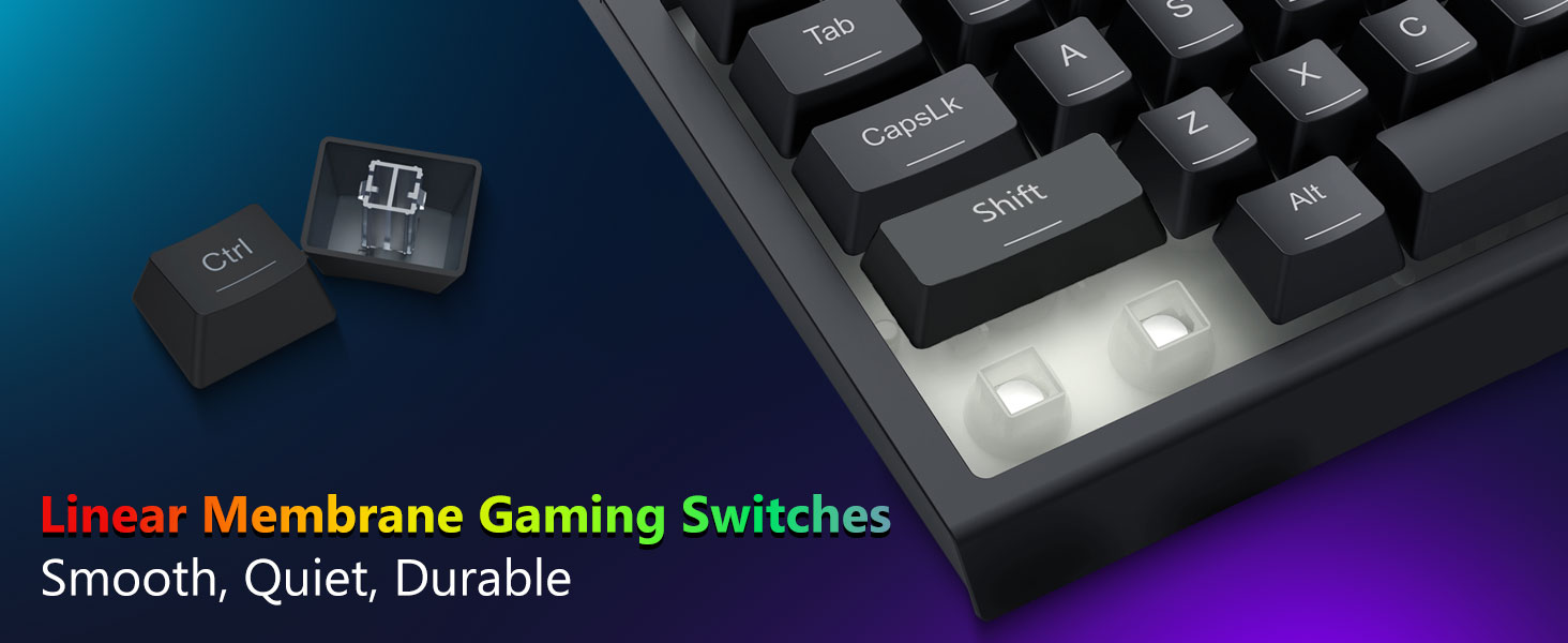 Las teclas están diseñadas para proporcionar retroalimentación consistente y actuación equilibrada. Esto garantiza una escritura precisa y una entrada confiable durante los juegos o el uso en la oficina.