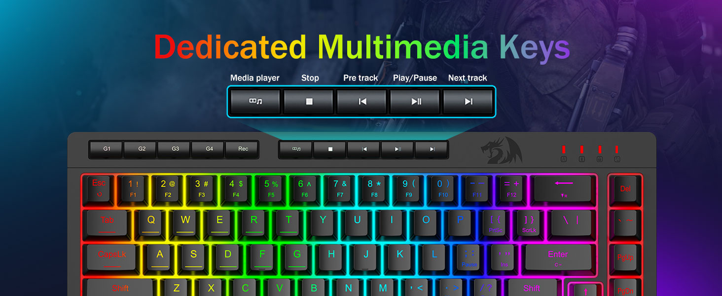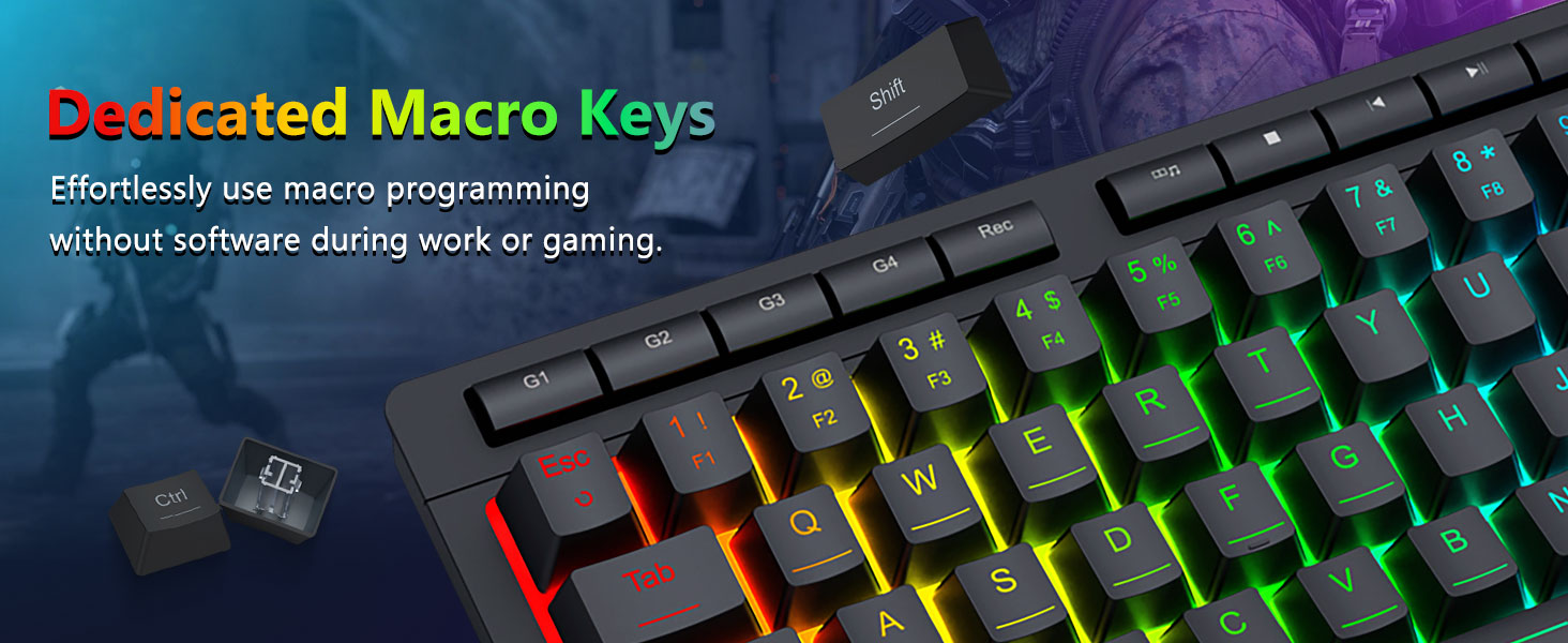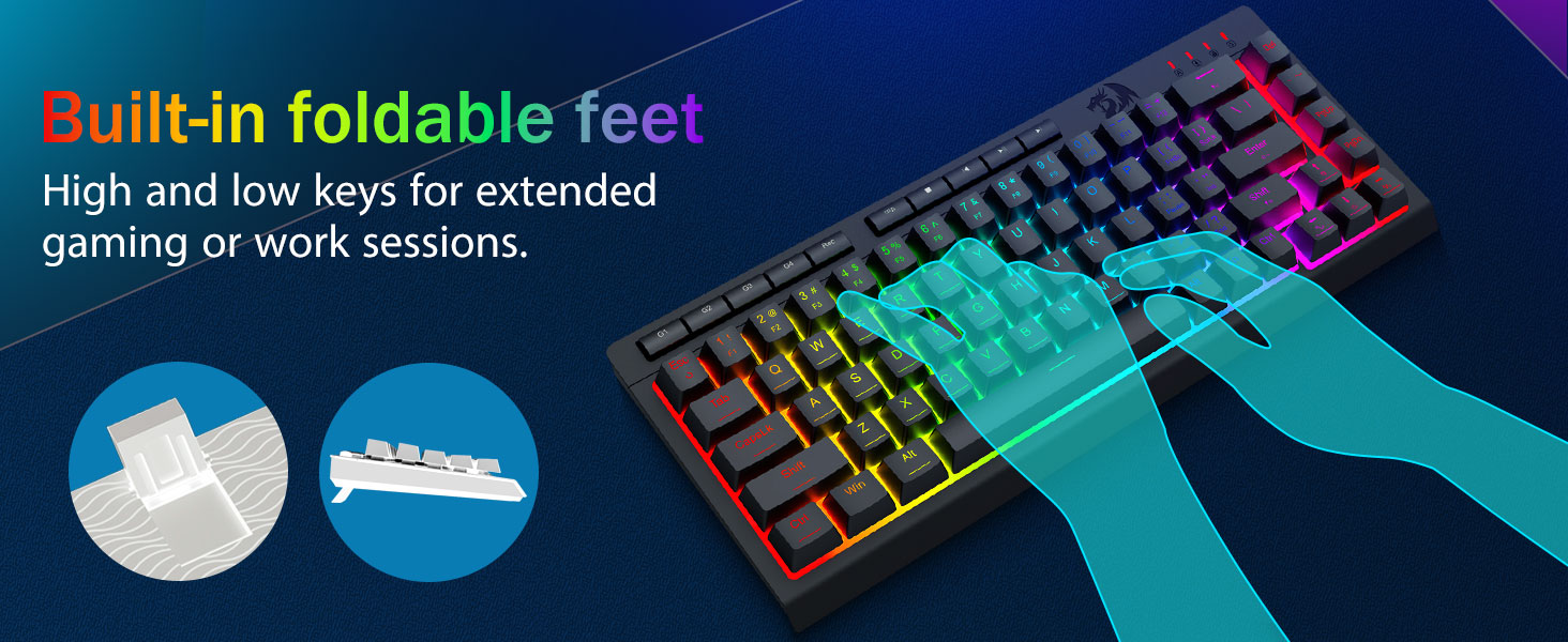 Las teclas están diseñadas para brindar durabilidad y una textura consistente, lo que ayuda a mantener la comodidad durante largos períodos. La iluminación RGB se distribuye uniformemente, mejorando la visibilidad sin distracciones.