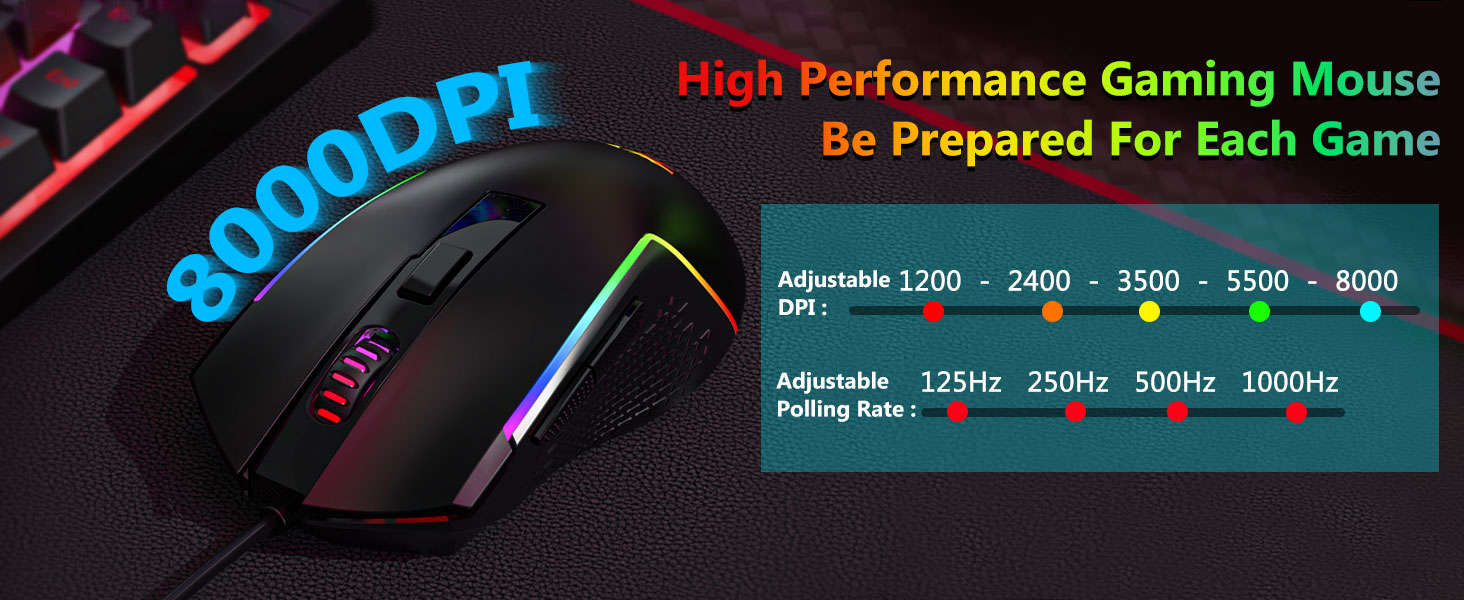 El mouse incluido está equipado con un sensor óptico que admite un seguimiento estable y un movimiento suave del cursor. La configuración de DPI ajustable permite a los usuarios combinar la sensibilidad con diferentes tareas.
