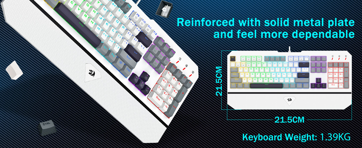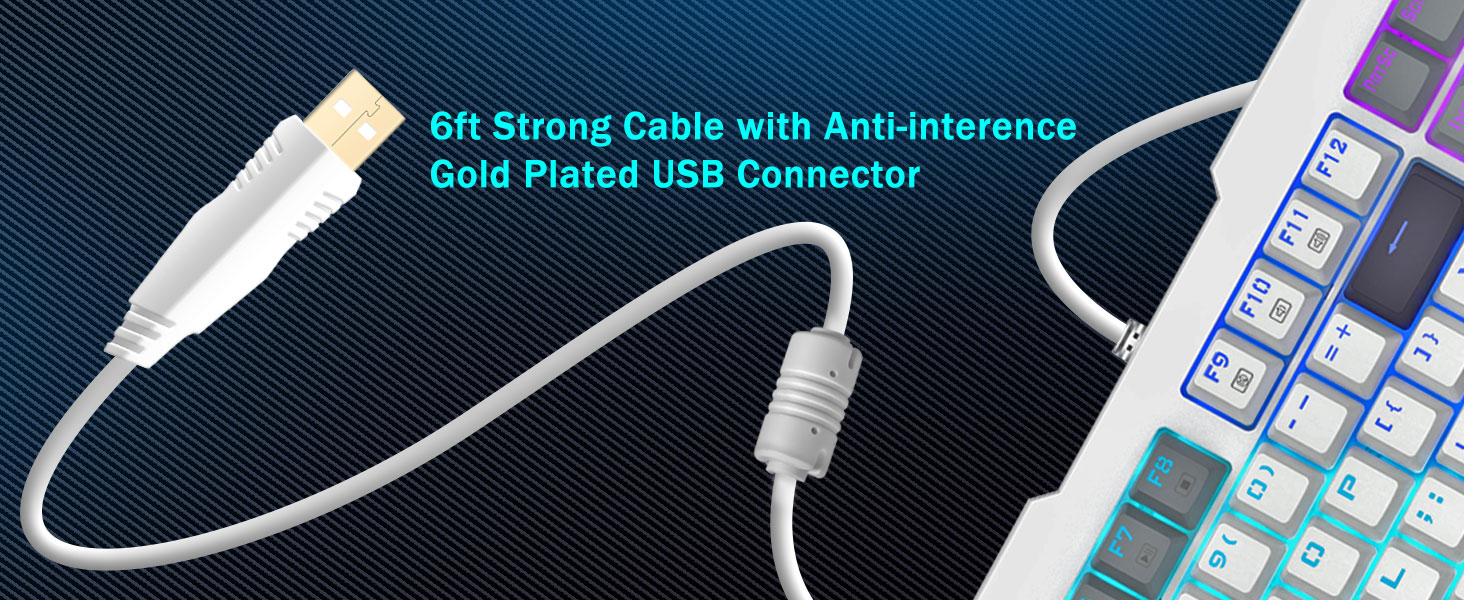 【Teclado de tamaño completo de 104 teclas de gama alta】Fabricado con una aleación de metal de primera calidad y material ABS, el panel del teclado es extremadamente resistente y resistente a los arañazos. El conector USB chapado en oro garantiza una conexión estable y confiable para un rendimiento de juego máximo. Con un peso de 1,39 kg, este teclado se siente como un tanque sólido en tus manos, proporcionando una estabilidad incomparable durante el uso.
