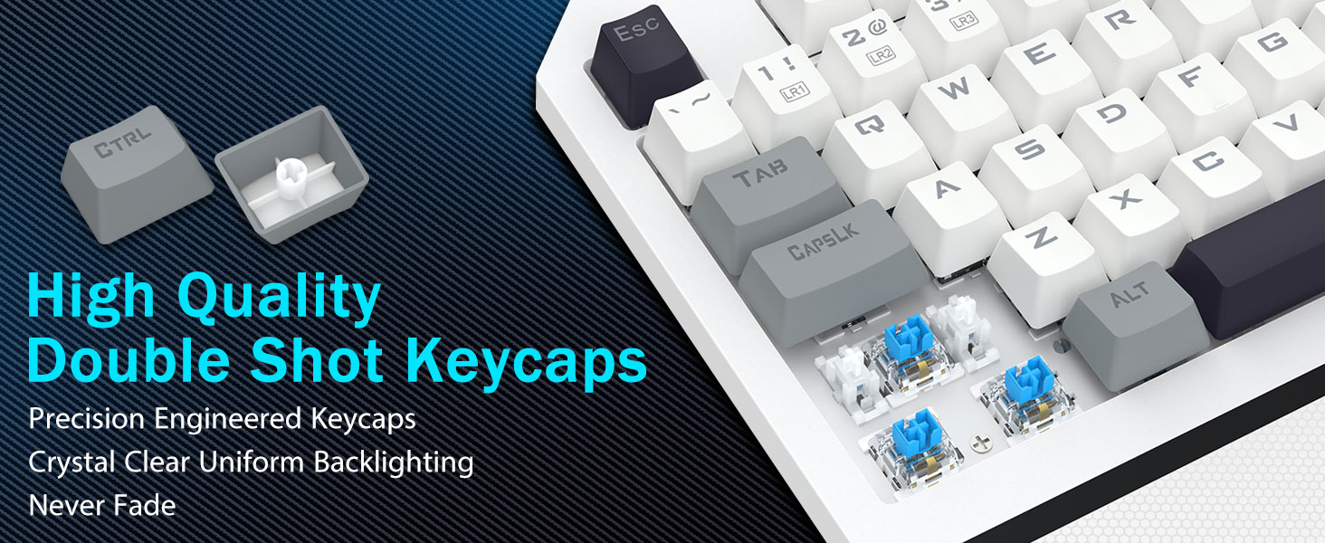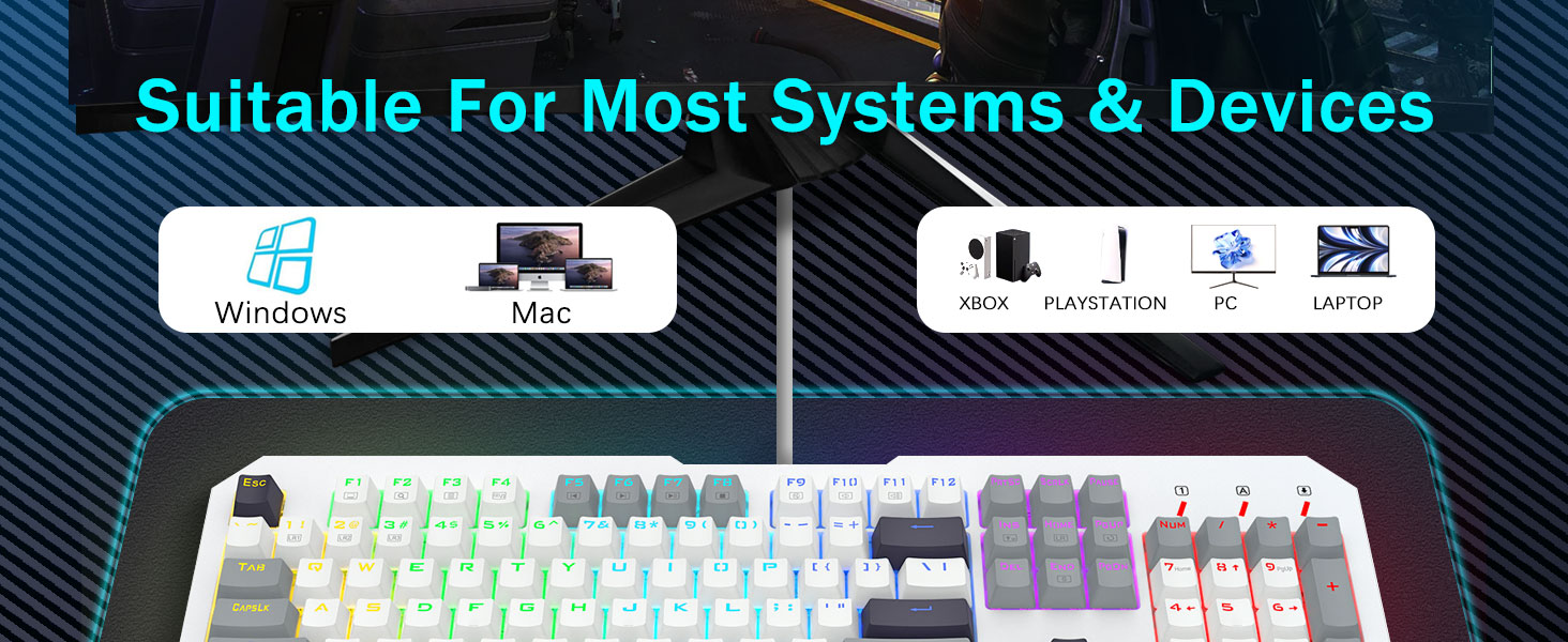 【Teclado retroiluminado arcoíris para una experiencia inmersiva】Ilumine su escritorio con 11 modos de retroiluminación dinámica y 5 niveles ajustables de velocidad y brillo. Este teclado cambia las reglas del juego en su configuración de juego, ya que mejora su estado de ánimo y su inmersión, especialmente en entornos con poca luz. Las teclas ABS de doble inyección ultraduraderas garantizan una luz de fondo uniforme y clara, lo que mejora la precisión de escritura incluso en la oscuridad.