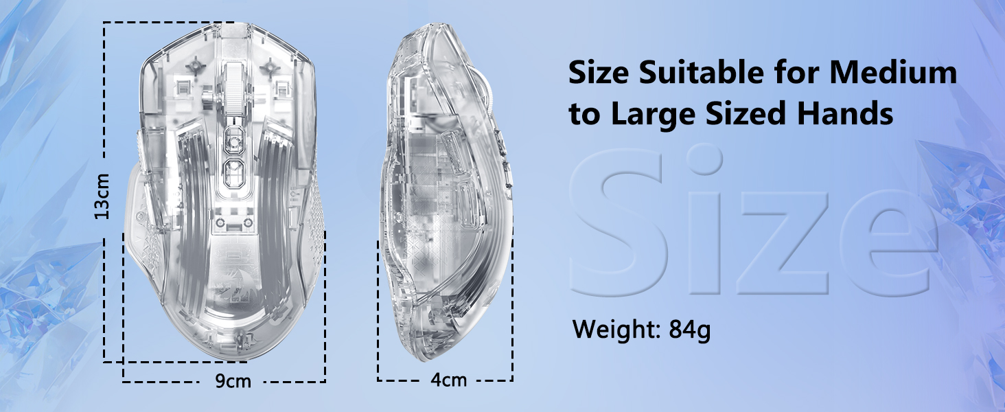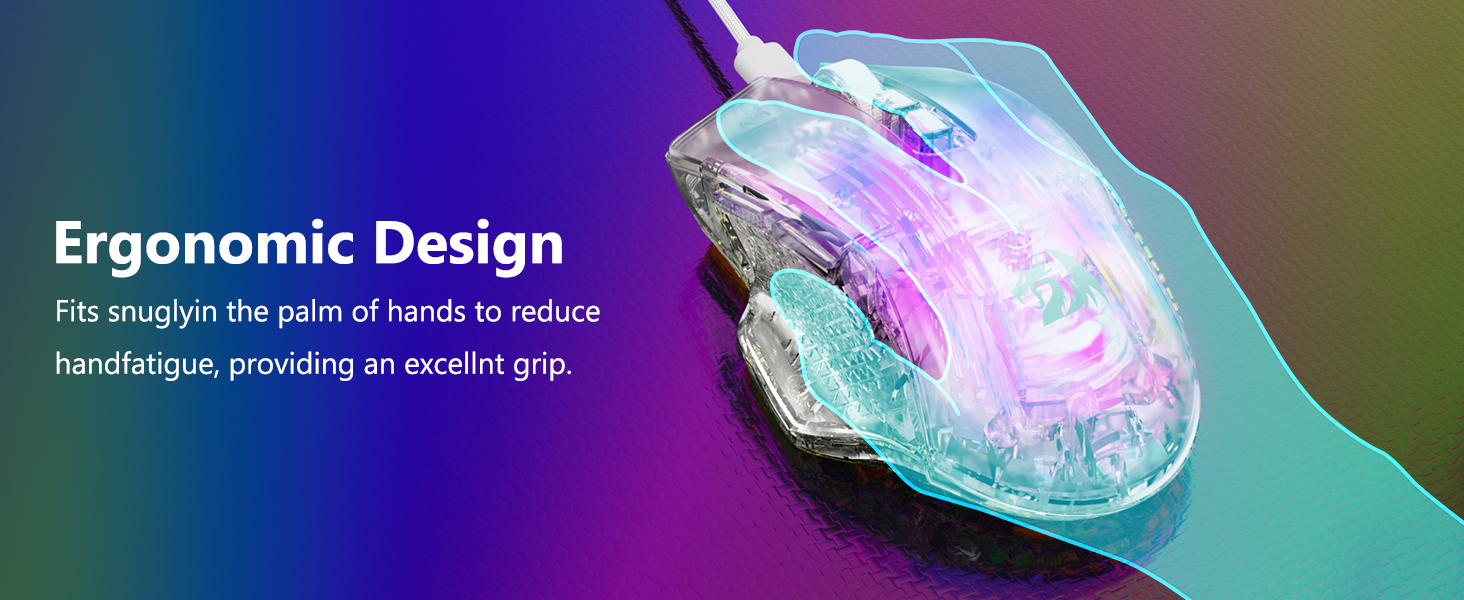 El mouse tiene una forma que se adapta naturalmente a la mano, lo que permite un uso prolongado sin tensión excesiva. Su estructura permite estilos de agarre cómodos, incluidos agarres con la palma, las garras y las yemas de los dedos.