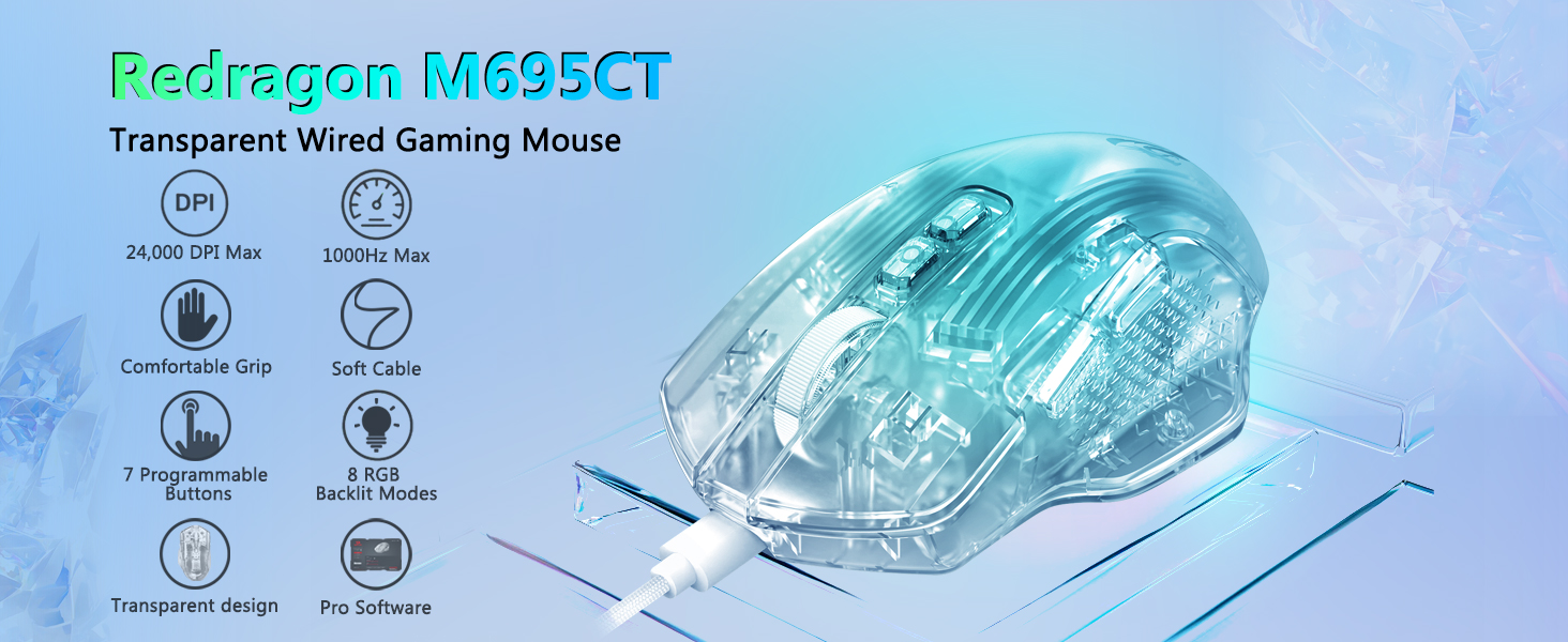 Con una conexión por cable confiable y un conjunto de funciones prácticas, el mouse para juegos con cable con modo de retroiluminación LED RGB blanco M695CT de 24,000 DPI es una opción confiable para los usuarios que buscan un control constante y un rendimiento eficiente en entornos informáticos modernos.